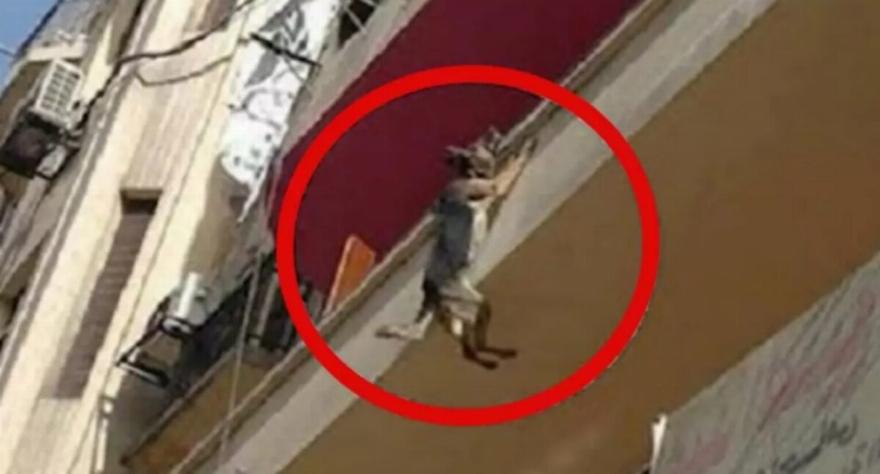 Οι κάτοικοι του Καΐρου της Αιγύπτου είδαν με τρόμο αυτό το φτωχό σκυλάκι να πετάει από το μπαλκόνι. Ο σκύλος προσπάθησε να πηδήξει από τον τρίτο όροφο, προσκολλημένος στο κολάρο του, και ευτυχώς δεν έπεσε στο έδαφος.