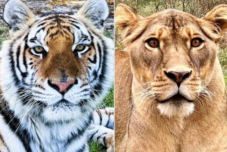Η Θεοδώρα, θηλυκή τίγρη που διασώθηκε από έναν ζωολογικό κήπο στην άκρη του δρόμου στον Καναδά, απολαμβάνει τώρα τη ζωή της στο Black Beauty Ranch- το λιοντάρι Douala, το 2024, ζει την καλύτερη ζωή της στο Black Beauty Ranch αφού διασώθηκε από έναν ζωολογικό κήπο στον Καναδά.