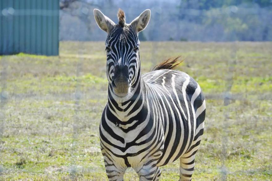 Η ζέβρα Zuko, το 2024, ζει την καλύτερη ζωή της στο Black Beauty Ranch αφού διασώθηκε από ζωολογικό κήπο στον Καναδά.