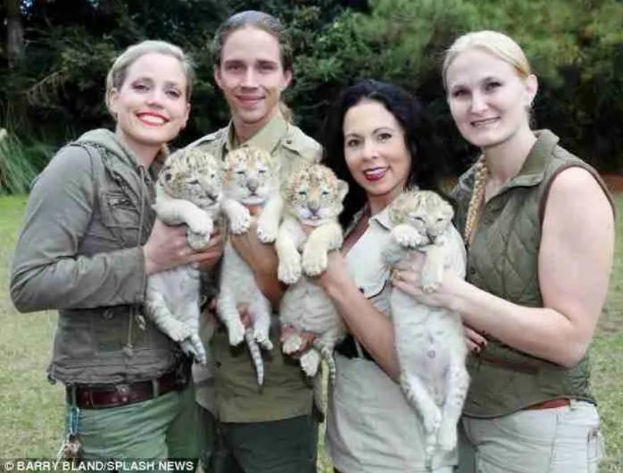 Όσο για τα συγκεκριμένα μικρά λεοντοτιγράκια, λόγω της λευκής γούνας τους, είναι ακόμη πιο σπάνια! Ονομάζονται Όλντιν, Σαμψών, Γιέτι και Απόλλωνας.
