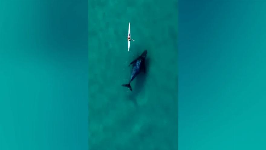 Ένας καγιάκερ είχε μια ιδιαίτερα κοντινή θέα σε μια συνάντηση που καταγράφηκε από ένα drone.