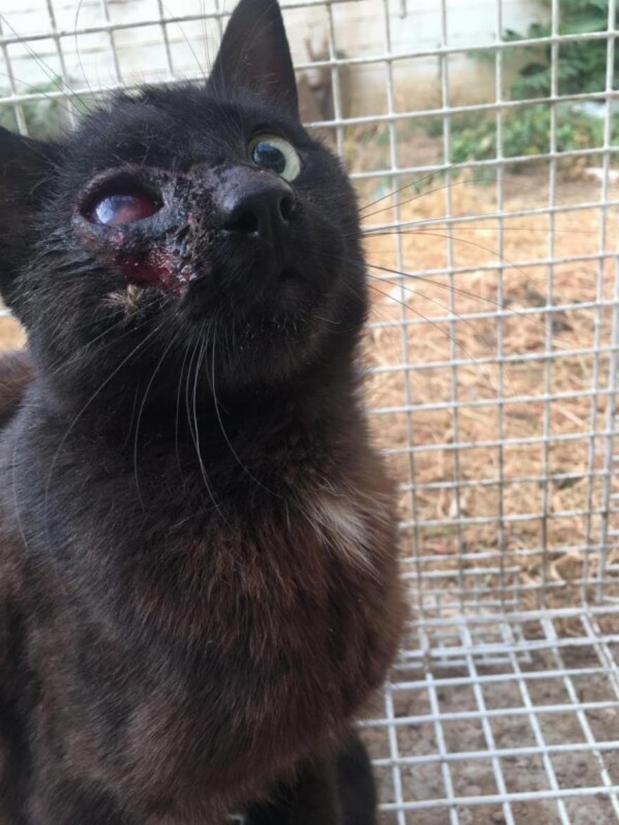 Δυστυχώς, ο γάτος, ονόματι Άροου, έχασε το μάτι του και θα χρειαστεί κρίσιμο χειρουργείο.