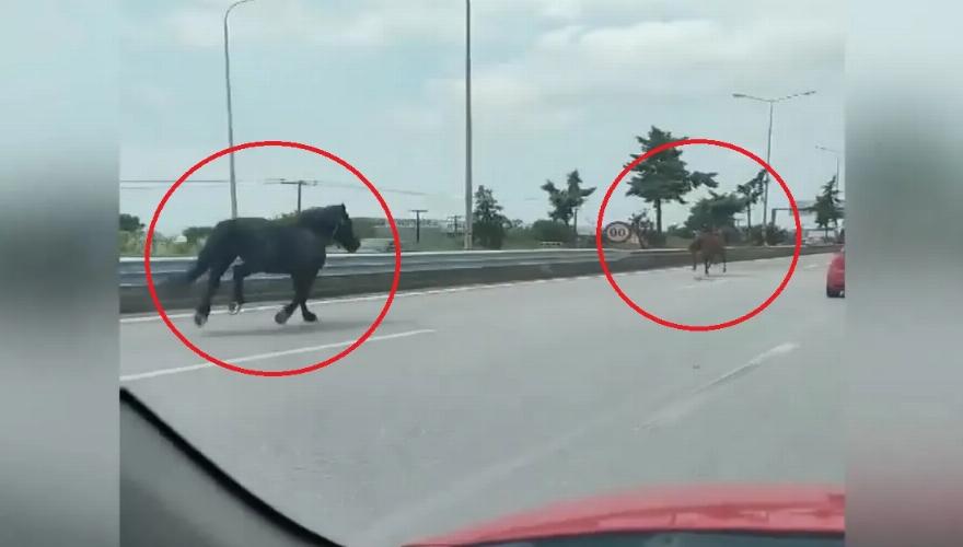 Τα άλογα άρχισαν να τρέχουν στον αυτοκινητόδρομο, με αποτέλεσμα να δημιουργηθεί κυκλοφοριακό πρόβλημα στην Ε.Ο.Ν. Μουδανιών – Θεσσαλονίκης, στο ρεύμα εισόδου και συγκεκριμένα, πριν από την αερογέφυρα της Θέρμης.