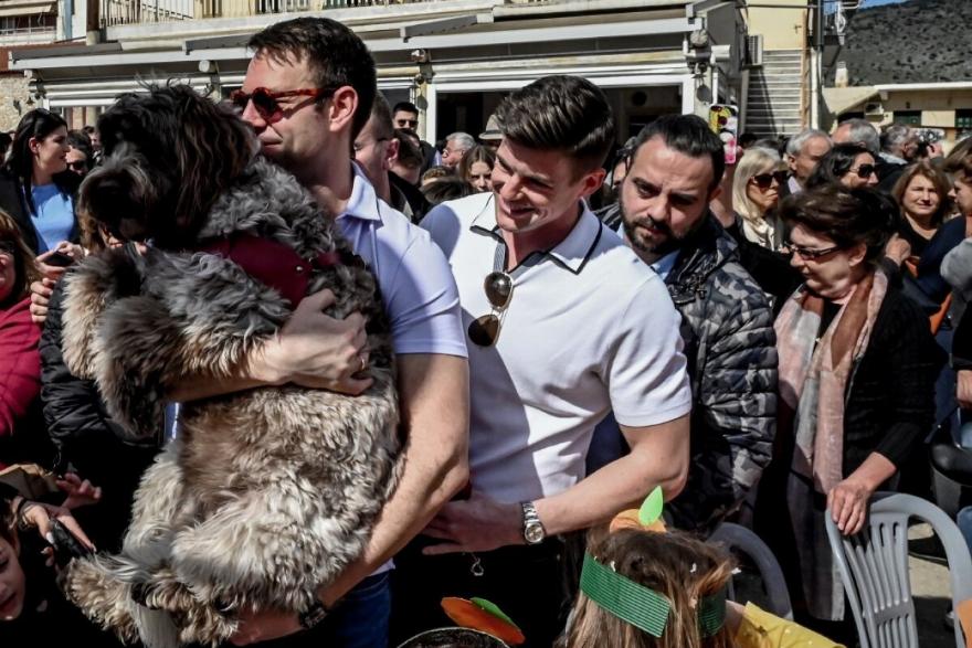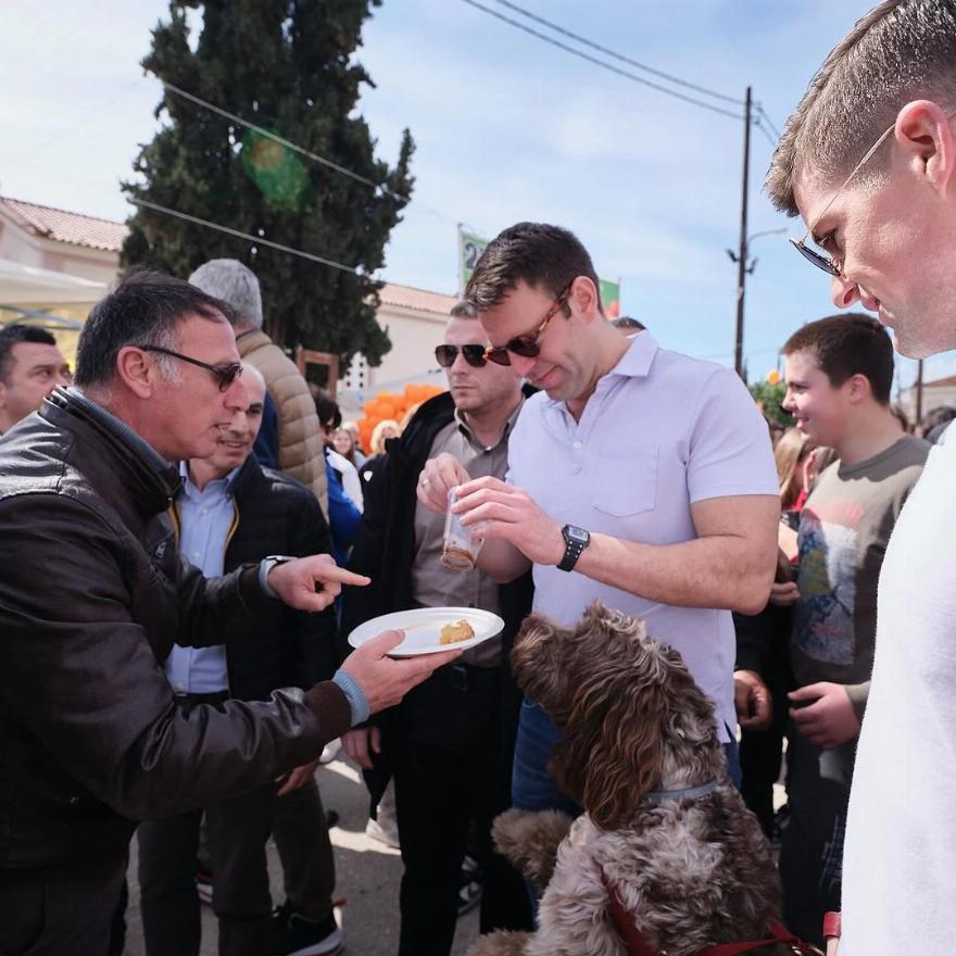 Πολλοί ήταν οι πολίτες που θέλησαν να φωτογραφηθούν με τον Στέφανο Κασσελάκη, τον Τάιλερ Μακμπέθ που τον συνόδευε αλλά και το σκυλάκι τους, την Φάρλεϊ…
