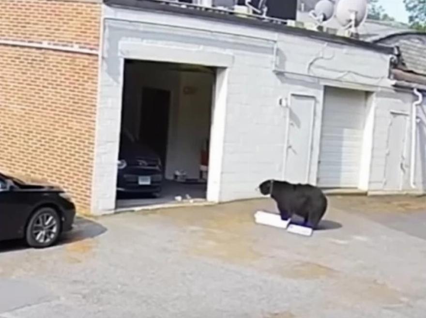 Το βίντεο παρακολούθησης δείχνει δύο υπαλλήλους να περπατούν γύρω από το πλάι του φούρνου για να προσπαθήσουν να τρομάξουν την αρκούδα, αλλά η αρκούδα καταλήγει να τους τρομάξει. Στη συνέχεια, η αρκούδα έσυρε ένα κουτί γεμάτο cupcakes από το γκαράζ και έφαγε περίπου 60 από τα γλυκά, ανέφερε το WTNH.