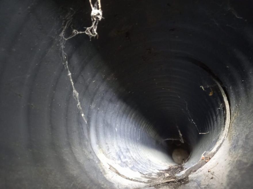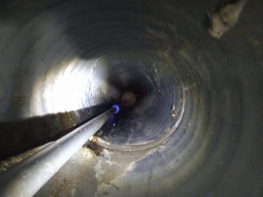 Ένα μικρό γατάκι έπεσε από μπαλκόνι δευτέρου ορόφου και έντρομο κατέφυγε σε φρεάτιο βρόχινου νερού στην περιοχή των Αγίων Αναργύρων. Δύο εθελοντές της ομάδας έσπευσαν αμέσως στο σημείο και προσπάθησαν να σώσουν το γατάκι. Ωστόσο, όταν έβγαλαν τη σχάρα, είδαν έναν σχεδόν κατακόρυφο σιδερένιο σωλήνα μικρής διατομής.