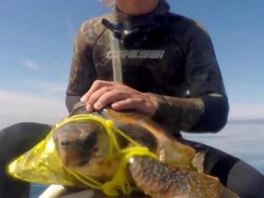 Αποφάσισαν να πλησιάσουν και να δουν την είναι αυτό το παράξενο αντικείμενο που επέπλεε στην θάλασσα. Όταν έφτασαν κοντά, κοίταξαν τι ήταν και τρομοκρατήθηκαν όταν βρήκαν μια νεαρή θαλάσσια χελώνα Καρέτα καρέτα μπλεγμένη άσχημα σε ένα δίχτυ.