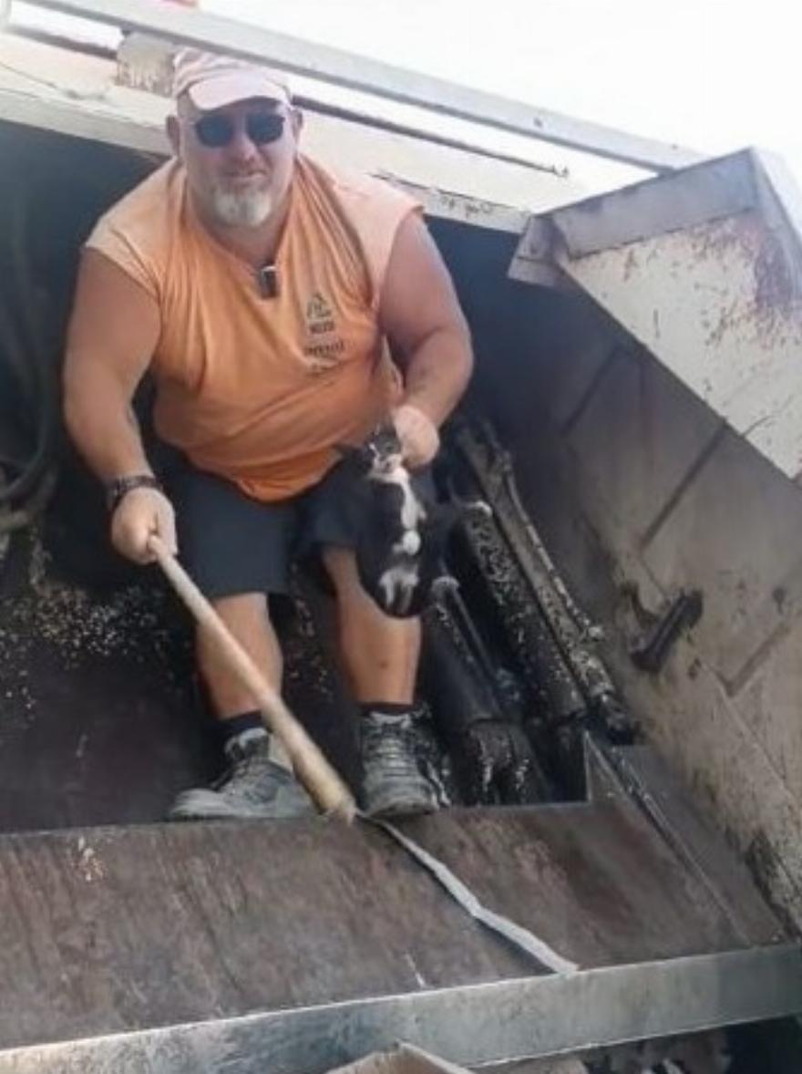 Ο υπάλληλος καθαριότητας άκουσε τη γάτα να κλαίει και διέκοψε τη διαδικασία σύνθλιψης, σώζοντας το ζώο.