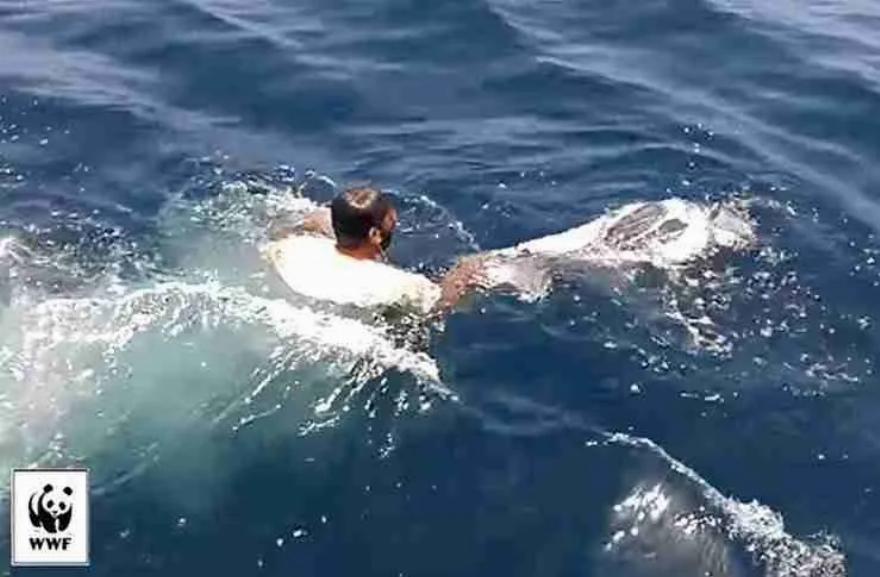 Ένας Αμερικανός πολίτης στο λιμάνι της Χερσονήσου πήδηξε στη θάλασσα για να σώσει μια θαλάσσια χελώνα που είχε μπλεχτεί στα σχοινιά ενός αλιευτικού σκάφους.