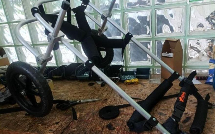 Μόλις το έμαθε ο Βασίλης Τσιγκούρας, έφτιαξε αυτό το αναπηρικό καροτσάκι. Ο Ρούντι, που ήταν πολύ μεγάλος για να ακολουθήσει το αφεντικό του στα χωράφια, παραδόθηκε σε έναν φιλόζωο που φτιάχνει αναπηρικά αμαξίδια στο Ίλιον.