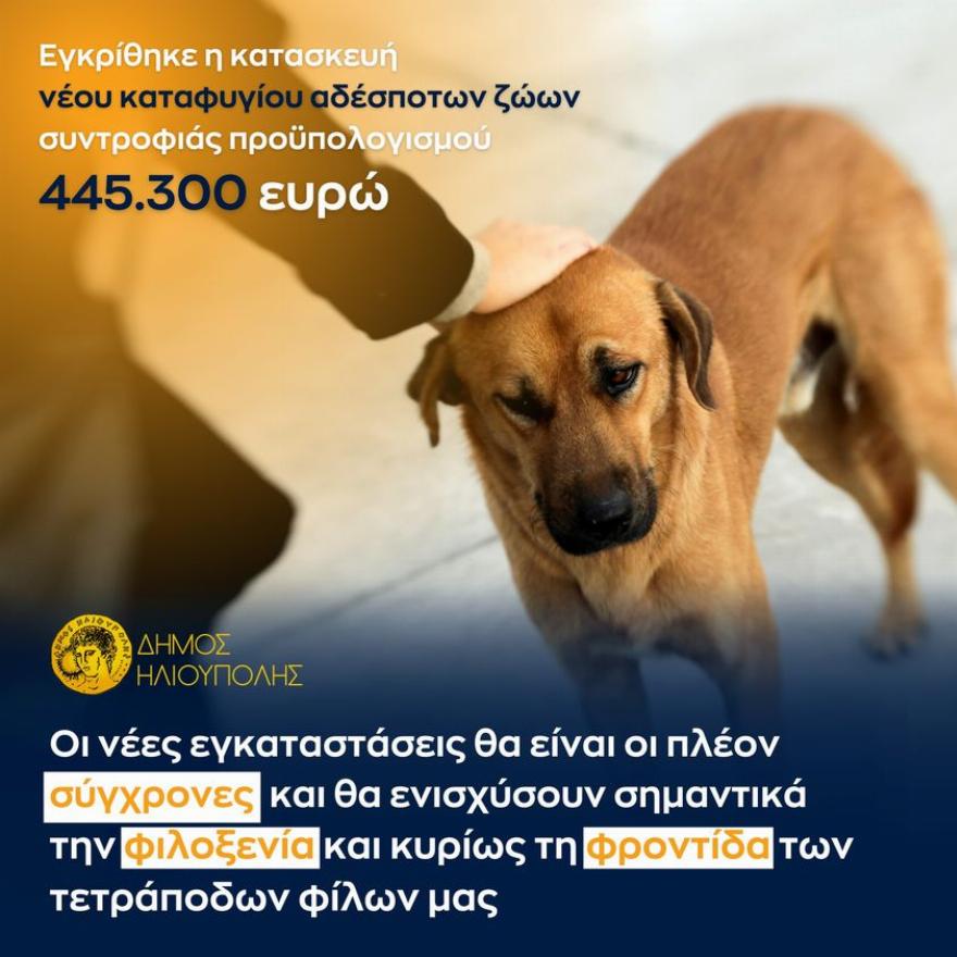Ένα νέο, σύγχρονο καταφύγιο για τα αδέσποτα ζώα θα έχει σε λίγο καιρό η Ηλιούπολη, με τη δημοτική αρχή να παίρνει «πράσινο φως» για την κατασκευή νέας υποδομής.