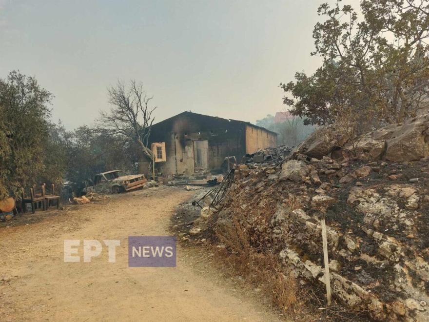 Εθελοντές απομάκρυναν ζώα από τις καμένες περιοχές στην βορειοανατολική Κέρκυρα, από το χωριό Λούτσες και ότι αποκαΐδια άφησε η φωτιά μέσα στον οικισμό.