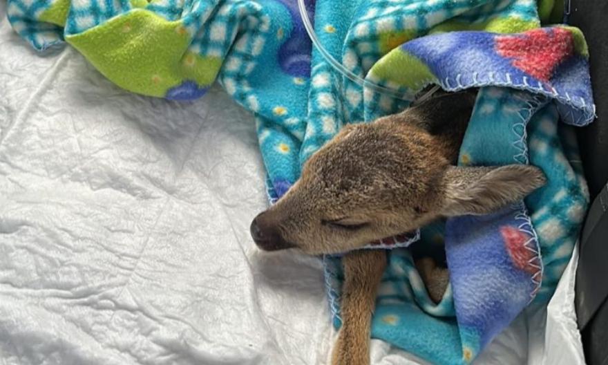 Ένα μικρό ελαφάκι ζαρκάδι, εντοπίστηκε μόνο του και όπως αποκαλύφθηκε αντιμετωπίζει νευρολογικά προβλήματα, που προήλθαν πιθανότατα από δάγκωμα άγριου ζώου στο κρανίο.