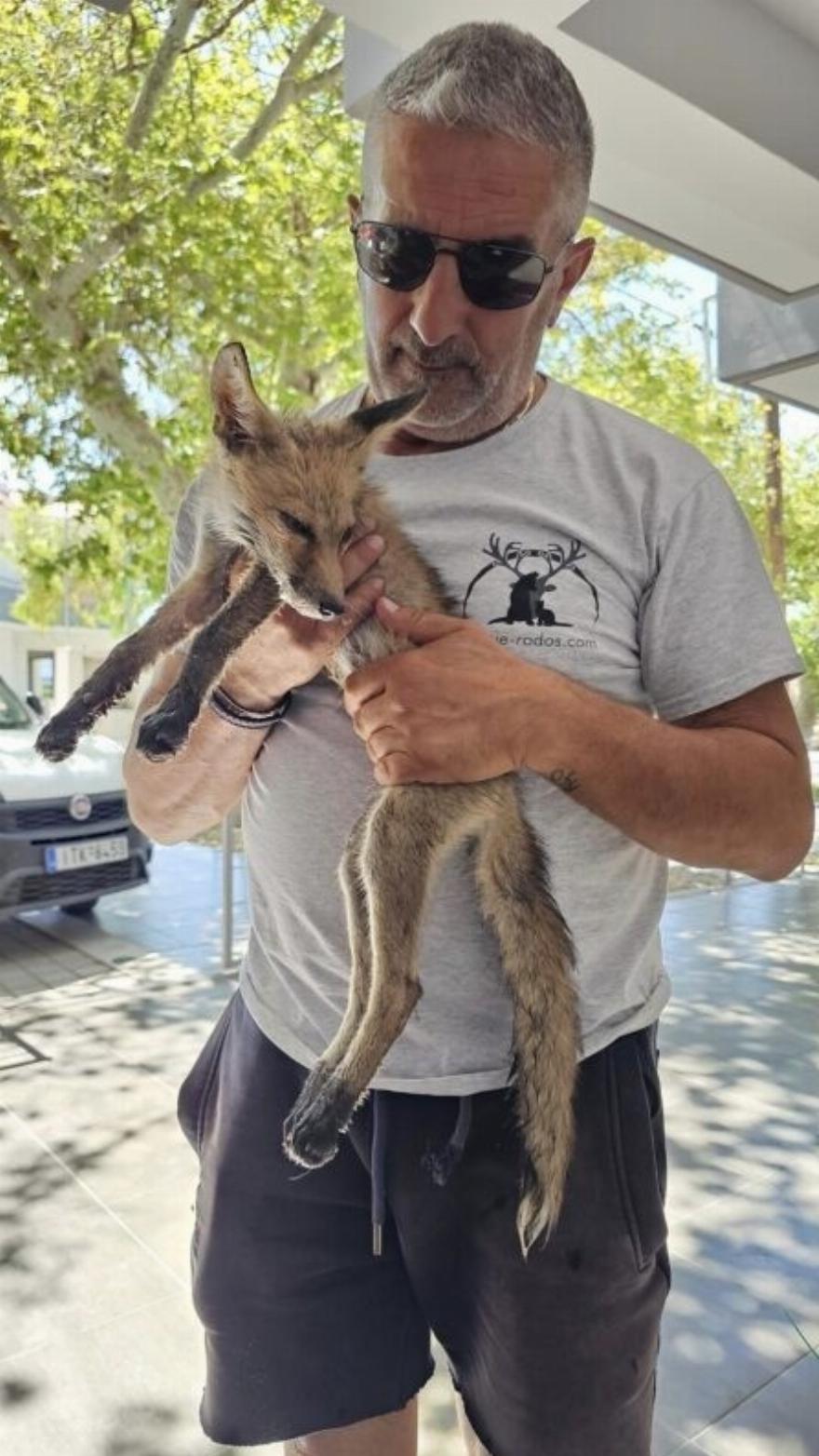 Το μικρό αλεπουδάκι είχε χάσει τη μητέρα του και βρισκόταν σε κακή κατάσταση. Με τη βοήθεια του δασαρχείου και του εθελοντή Γιώργου Κρητικού, που είναι γνωστός για την αφοσίωσή του στη διάσωση ζώων στη Ρόδο, το αλεπουδάκι μεταφέρθηκε σε κτηνιατρείο για περίθαλψη.