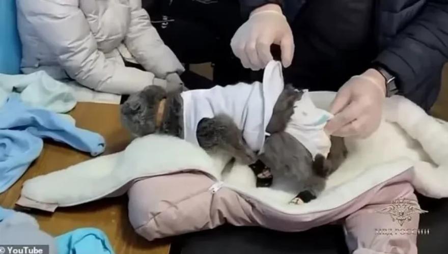 Στο βίντεο που δόθηκε στη δημοσιότητα μετά την προσαγωγή της γυναίκας στο αστυνομικό τμήμα της πόλης Νίζνι Ταγκίλ, φαίνονται οι αστυνομικοί να γδύνουν ένα «μωρό» σε υπνόσακο. Αντί, όμως, για μωρό μέσα στον υπνόσακο βρισκόταν μια γάτα και αυτό προκάλεσε μεγάλη έκπληξη σε όσους είδαν το βίντεο ή ήταν μπροστά στο περιστατικό.