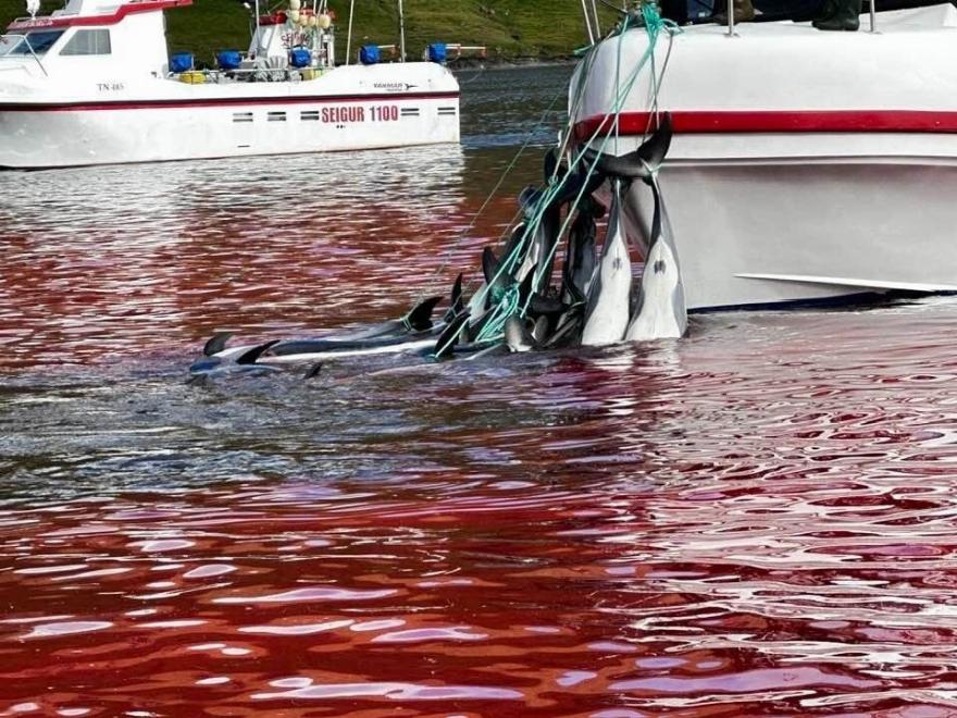 Εθελοντές από το Ίδρυμα Paul Watson καταγράφουν τη σφαγή στις Νήσους Φερόες, που ανήκουν στο Βασίλειο της Δανίας. Πολλοί κάτοικοι εκφράζουν μέσω social media την απορία τους γιατί η θανάτωση των λευκών δελφινιών του Ατλαντικού συνεχίζεται. Αυτά τα δελφίνια εντάχθηκαν στην παράδοση του grindadráp το 1992 και είναι πιο γρήγορα και ευκίνητα από τις παραδοσιακές φάλαινες-πιλότους, με την ικανότητα κυνηγιού τους να οφείλεται στη βελτίωση των σύγχρονων σκαφών.