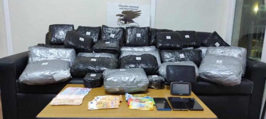 Συγκεκριμένα, κατά τη διάρκεια της έρευνας, με τη βοήθεια του σκύλου ανιχνευτή “Λάικα” του Τμήματος Ασφαλείας Αλεξανδρούπολης, εντοπίστηκε στο κάτω μέρος του αυτοκινήτου ειδικά διαμορφωμένη κρύπτη που περιείχε (27) νάιλον σακούλες με ακατέργαστη κάνναβη, συνολικού βάρους 25.220 γραμμαρίων, (2) νάιλον σακούλες με κατεργασμένη κάνναβη (σοκολάτα). συσκευασία, συνολικού βάρους 1.325 γραμμαρίων.