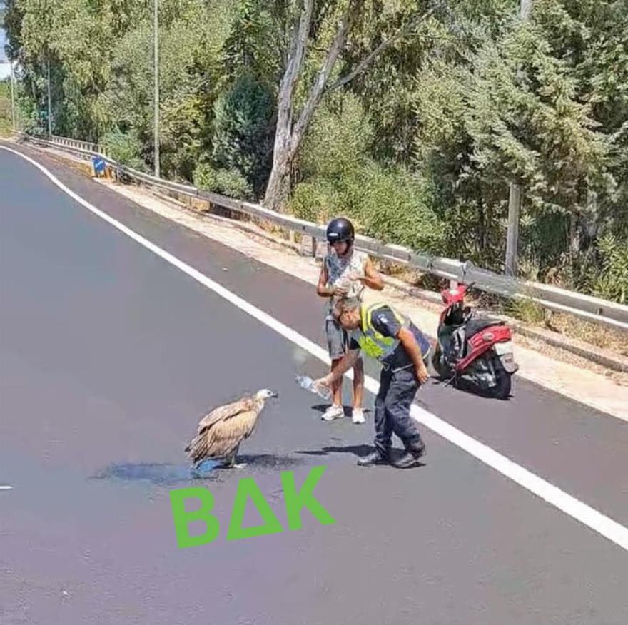 Πολλοστή φορά σημειώνεται φέτος παρόμοιο περιστατικό με γυπαετό ή άλλο όρνιο να καταρρέει λόγω ζέστης και να βρίσκεται σε οριακή κατάσταση. Περαστικοί δίνουν ανάσα ζωής στα άγρια πτηνά με λίγο νερό.