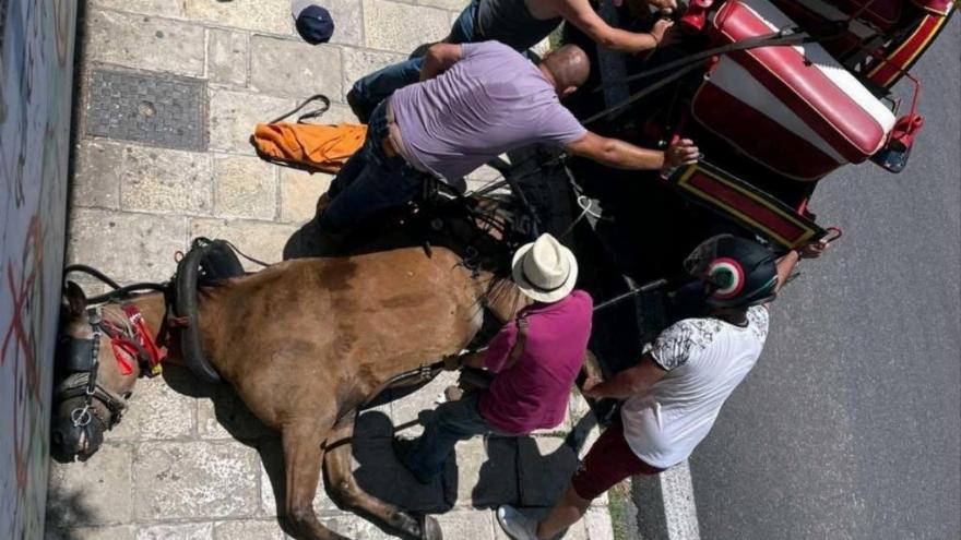 Το μεσημέρι της Πέμπτης 7 Ιουλίου, το άλογο κατέρρευσε ξαφνικά στη μέση του δρόμου ενώ επέστρεφε στη βάση του. Αυτόπτες μάρτυρες άρχισαν να τραβούν εικόνες με τα κινητά τους τηλέφωνα και αυτό ενόχλησε έντονα έναν από τους αμαξηλάτες, που κάποια στιγμή τα έβαλε με έναν ποδηλάτη που βρισκόταν στο σημείο.