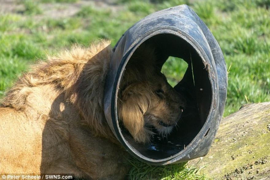 Το λιοντάρι της φωτογραφίας κόλλησε σε ένα βαρέλι καθώς προσπαθούσε να φάει. Αυτό που συνέβη στη συνέχεια θα σας κάνει να μείνετε άφωνοι!