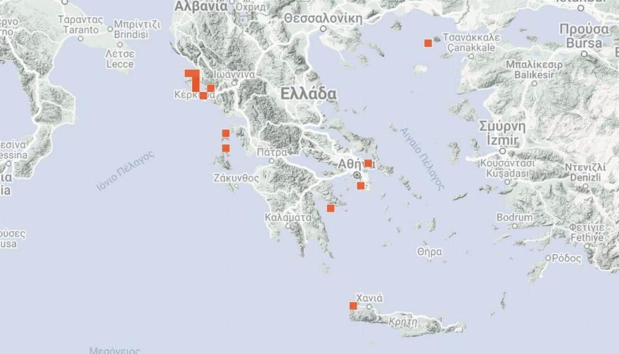 Όπως αναφέρουν ειδικοί, οφείλεται σχετικά με την κλιματική αλλαγή. Στον παρακάτω χάρτη καταγράφονται το που έχουν παρατηρηθεί μωβ μέδουσες τις τελευταίες μέρες στη χώρα μας.