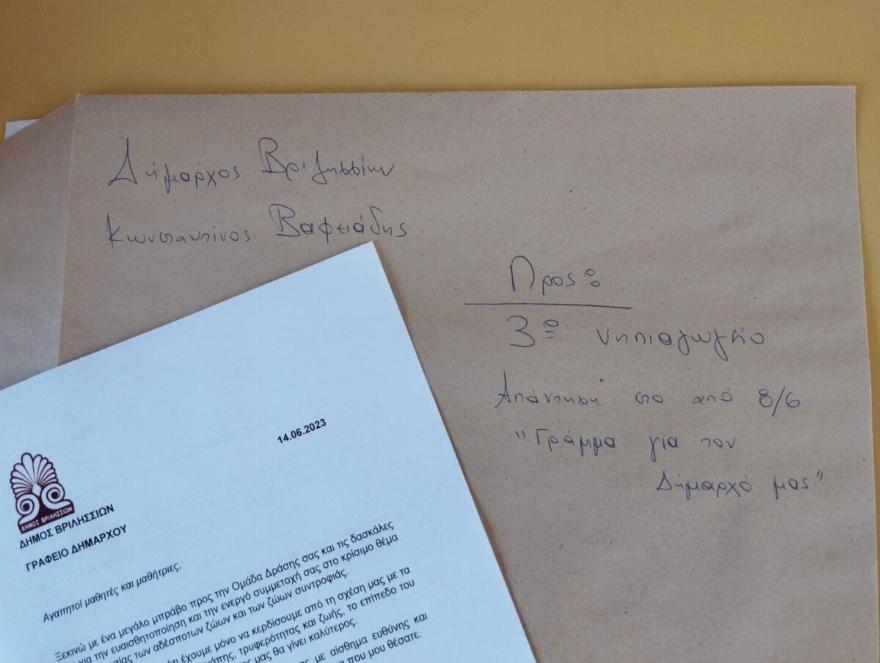 Τα παιδιά του Νηπιαγωγείου 3 έστειλαν επιστολή στον Κωνσταντίνο Βαφειάδη, δήμαρχο Βριλησσίων, για τα αδέσποτα γατάκια και την προστασία τους.