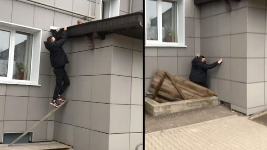 Ανεύθυνα και χωρίς σκέψη, άρπαξε ένα σκαλοπάτι και ανέβηκε πάνω στη σκεπή. Η γάτα κοίταξε περίεργα προς την πλευρά του μεθυσμένου άνδρα, αλλά η αδέξια κίνησή του ήταν αρκετή για να ανατραπεί, οδηγώντας τον σε ένα βρώμικο στάσιμο νερό.
