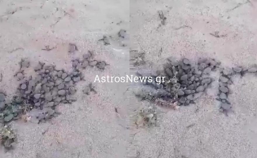 Περίπου 50 χελωνάκια Caretta caretta εκκολάφθηκαν το απόγευμα λίγο πριν τη δύση του ήλιου, στην παραλία «Πόρτες» στο Παράλιο Άστρος.