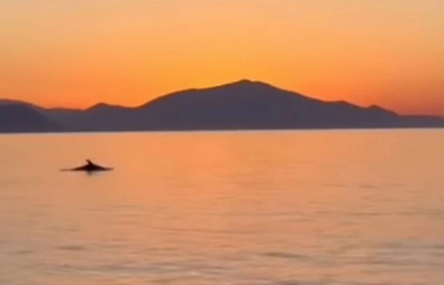 Σε μια εντυπωσιακή εικόνα, δελφίνια εμφανίστηκαν λίγα μέτρα από την ακτή στο Πευκί, στη βόρεια Εύβοια, καθώς ο ήλιος άρχισε να δύει.