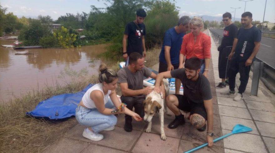 Συγκεκριμένα, οι νέοι αποφάσισαν να αναλάβουν δράση, μπήκαν στην περιοχή με σανίδες SUP και με προσεκτικές κινήσεις κατάφεραν να σώσουν τον σκύλο, τον οποίο και ευχαρίστησε ο ιδιοκτήτης.