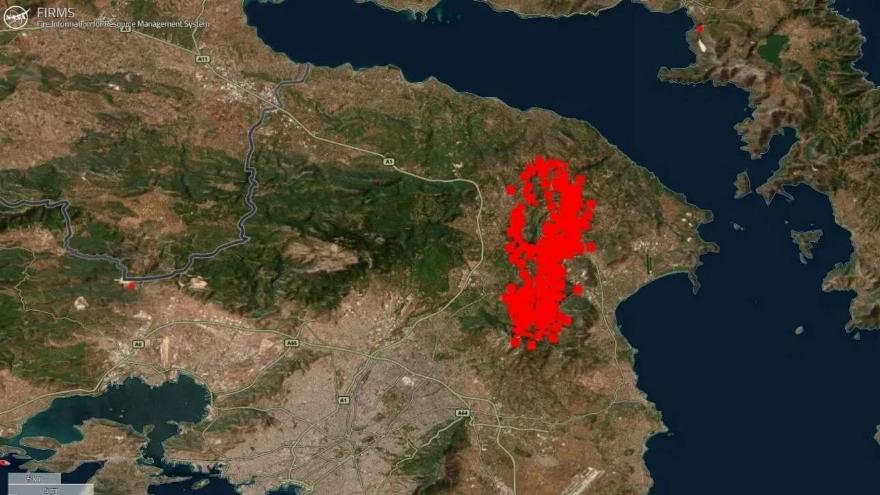Αποκαρδιωτική είναι η εικόνα της έκτασης της πύρινης λαίλαπας που κατακαίει την Αττική, που καταγράφει το πρόγραμμα FIRMS της NASA, με τις διάσπαρτες εστίες να δημιουργούν ένα ενιαίο σώμα.