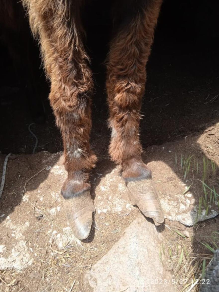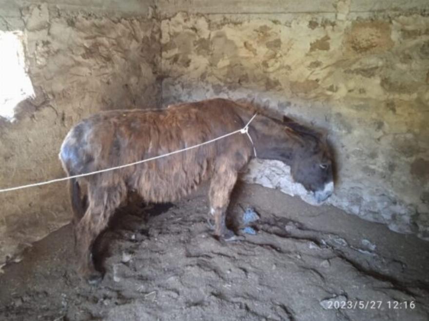 «Έφτασε μόλις χθες στο στάβλο μας! Ο γαϊδαράκος αυτός εδώ και μήνες περιφερόταν στα Μέθανα, καθώς ο άνθρωπός του σε βαθιά γεράματα βρέθηκε ανήμπορος στο κρεβάτι. Ηλικιωμένος και ο γαϊδαράκος έκλαιγε όταν τον φορτώναμε αποχαιρετώντας μια ολόκληρη ζωή στο χωριό. Σκληρή ζωή μας είπαν οι γείτονες, με πολύ κουβάλημα. Φτάνοντας στο στάβλο μας κι αντικρίζοντας τα άλλα γαϊδουράκια ηρέμησε και άρχισε να νιώθει ασφάλεια. Τώρα έχουμε πολλή δουλειά μπροστά μας. Χρειάζεται σωστή φροντίδα που επί χρόνια δεν είχε, οι οπλές του είναι παραμορφωμένες, ενώ τα δόντια δεν βοηθούν να μασήσει. Θα χρειαστεί εξονυχισμό και οδοντιατρική φροντίδα από εξειδικευμένους επαγγελματίες και ειδικές τροφές που να μπορεί να μασήσει με ευκολία. Θέλουμε να του προσφέρουμε τη ζωή που του αξίζει στα γεράματά του με ασφάλεια κι αγάπη.