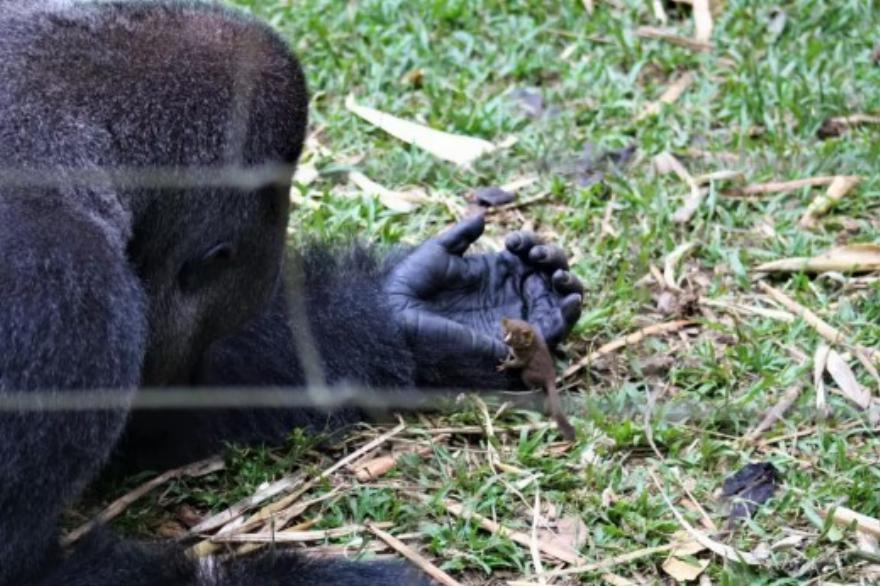 “Ο αργυρογέφυρος γορίλλας Μπόμπο μας έκανε έναν εκπληκτικό νέο φίλο αυτή την εβδομάδα – ένα μωρό άγριου θάμνου!” έγραψε η Ape Action Africa στο Facebook. “Οι φροντιστές τον ανακάλυψαν να αγκαλιάζει το μικροσκοπικό πρωτεύον θηλαστικό κατά τη διάρκεια των πρωινών τους ελέγχων και είδαν έκπληκτοι ότι το χειρίζεται με τη μεγαλύτερη δυνατή φροντίδα”.
