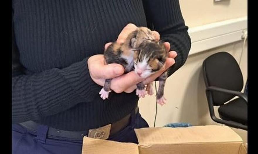 Δυστυχώς, τα δύο από τα τέσσερα γατάκια ήταν ήδη νεκρά. Τα δύο γατάκια που σώθηκαν μεταφέρθηκαν άμεσα σε κτηνιατρική κλινική όπου έγιναν προσπάθειες να κρατηθούν στη ζωή”.