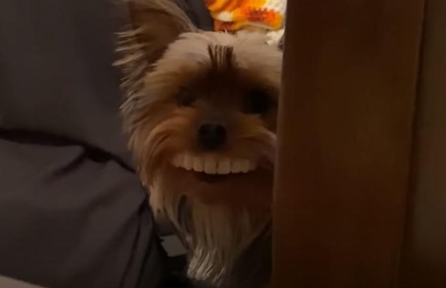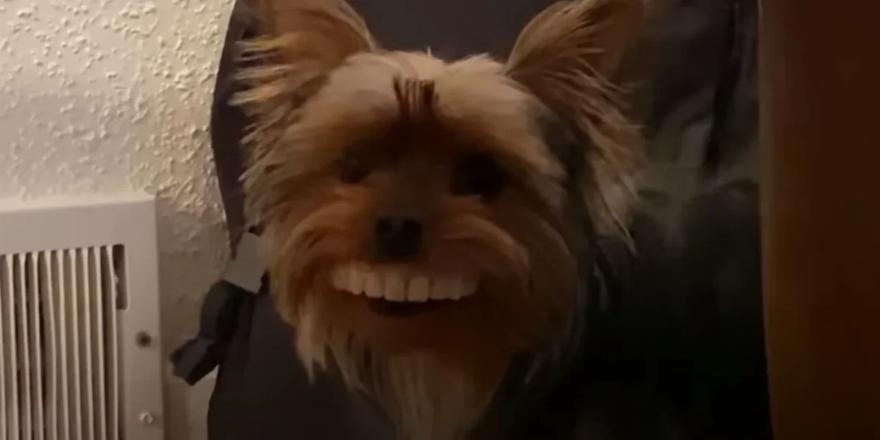 Ο λόγος είναι ότι ο Μπεν Κάμπελ, ένας ψυχολόγος από το Μίσιγκαν, αγόρασε ένα τεράστιο σετ οδοντοστοιχιών για να βγάζει αστείες selfies του εαυτού του και άλλων. Όμως ο σκύλος του, το τεριέ του Γιορκσάιρ, ο Τόμας, είχε άλλα σχέδια. Όταν ο Μπεν έβαλε τα δόντια του στο τραπέζι, ο Τόμας άρχισε να συμπεριφέρεται όπως λέει η περιγραφή του βίντεο. Αν και όλοι περίμεναν ότι θα το έσπαγε σε κομμάτια και θα το μασούσε, εκείνος αποφάσισε απλά να το κουβαλάει στο στόμα του καθώς περπατούσε στο σπίτι και κατάφερε με κάποιο τρόπο να βάλει το δόντι σωστά μέσα, χαρίζοντάς μας μια απίστευτα αστεία εικόνα.