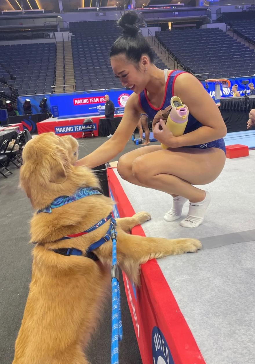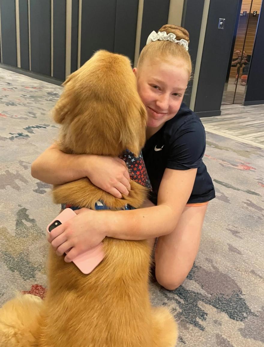 Το πρόγραμμα θεραπείας με σκύλο, που ξεκίνησε από την Hunt, ξεκίνησε για πρώτη φορά τον Φεβρουάριο του 2023 κατά τη διάρκεια ενός προγράμματος ρυθμικής γυμναστικής στην Ινδιανάπολη, δήλωσε η Greer.