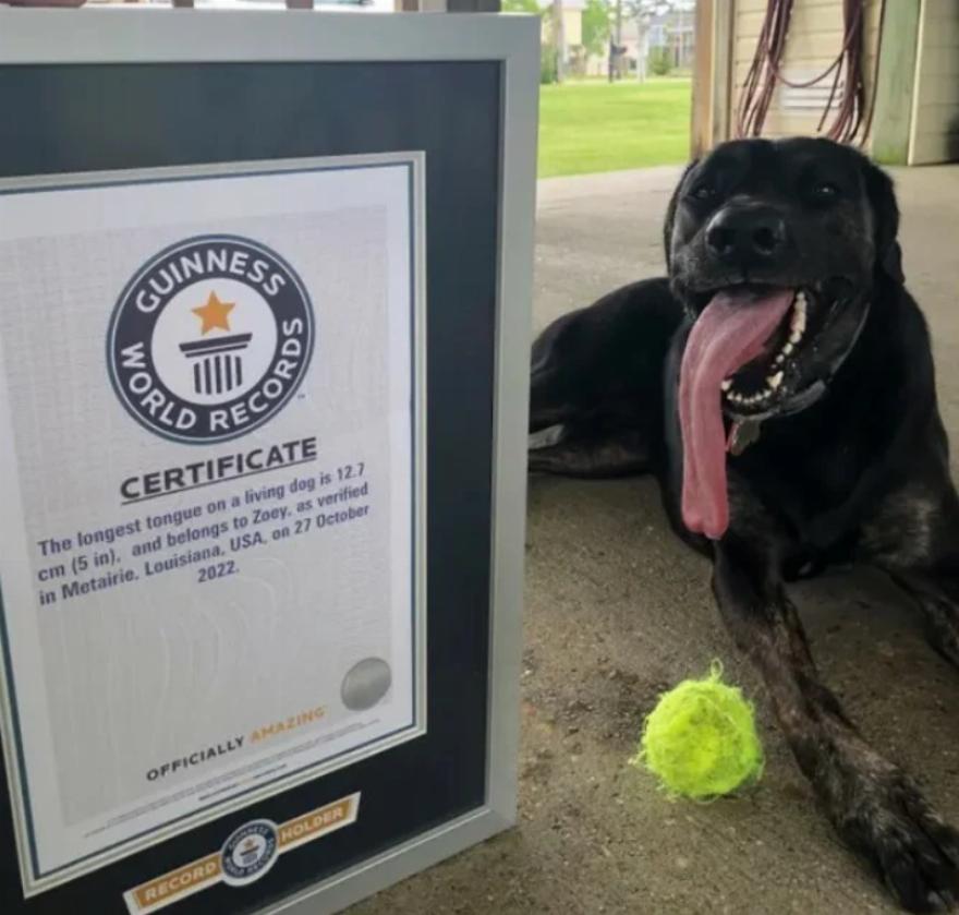 Έτσι αποφάσισαν να κάνουν αίτηση στο ρεκόρ Γκίνες και τελικά έλαβαν το πιστοποιητικό που επιβεβαίωνε ότι η Ζόι διαθέτει τη μεγαλύτερη γλώσσα σκύλου στον κόσμο.