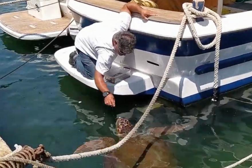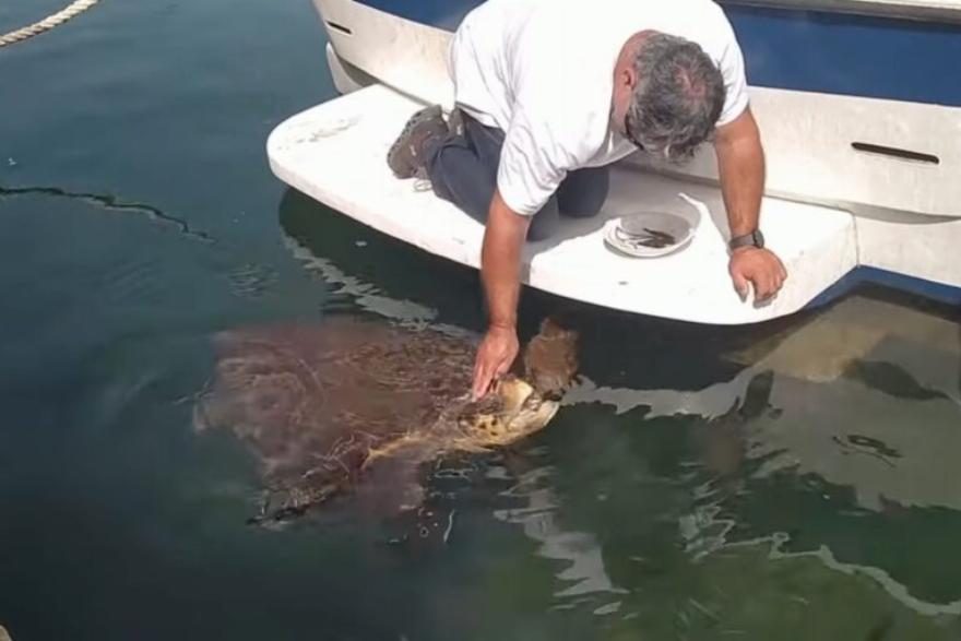 Ο Χάρης βρέθηκε νεκρός – η μασκότ της χελώνας των Χανίων έτρωγε καλαμάρια από τα χέρια των ψαράδων.