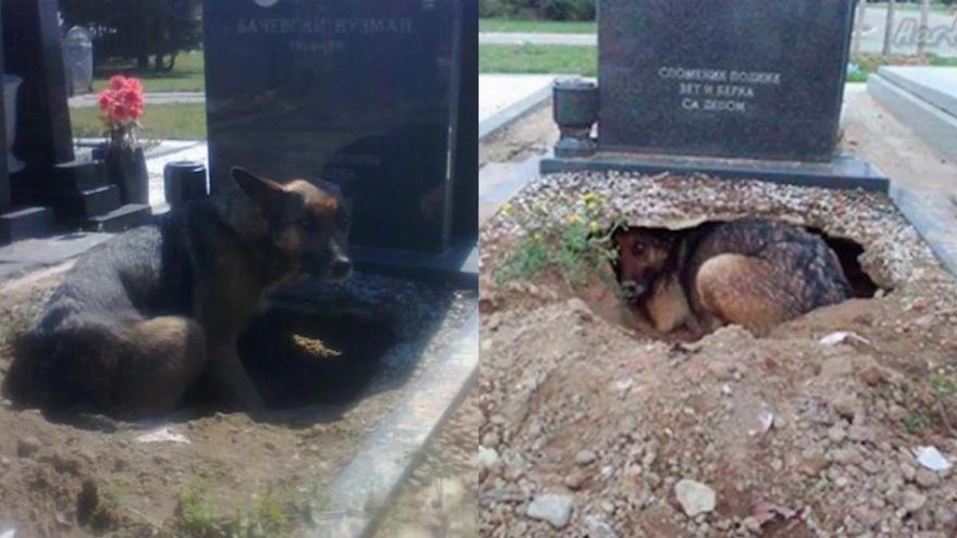 Σε ένα νεκροταφείο στο Νόβι Βελιγράδι της Σερβίας, ένας γερμανικός ποιμενικός σκύλος προσποιήθηκε ότι θρηνεί τον ιδιοκτήτη του και βρήκε φυσικό καταφύγιο σε έναν από τους τάφους.