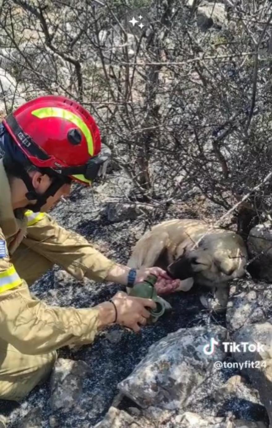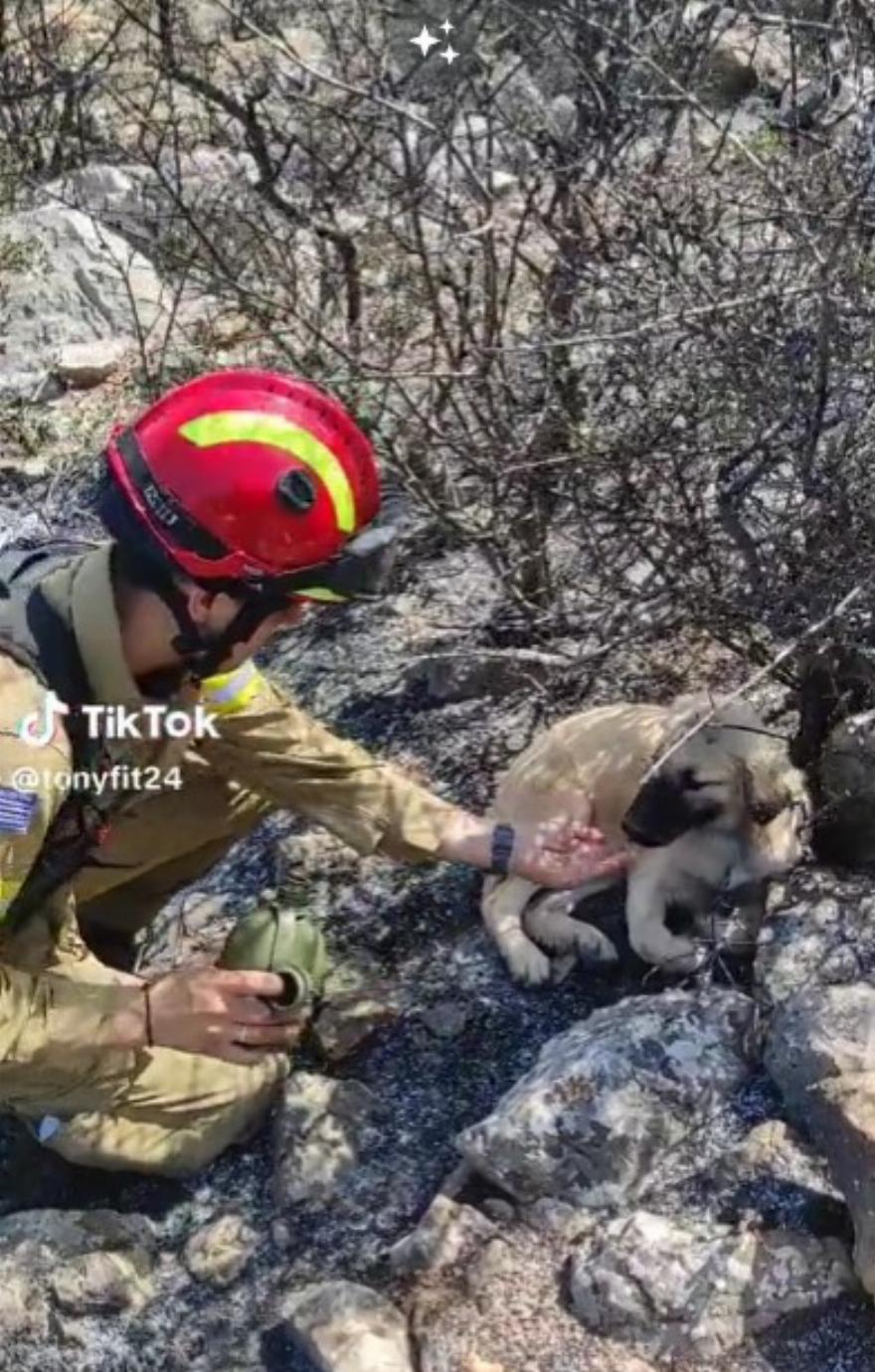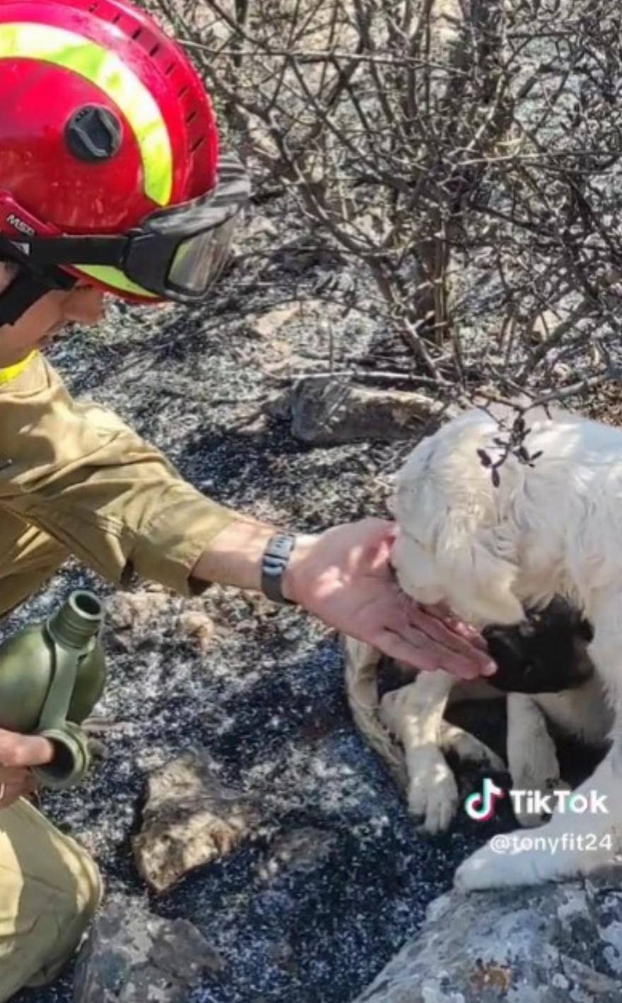 Ιδιαίτερα συγκινητικό είναι ένα βίντεο που δείχνει πυροσβέστη να προσφέρει νερό σε δύο σκύλους, μέσα στα καμμένα.