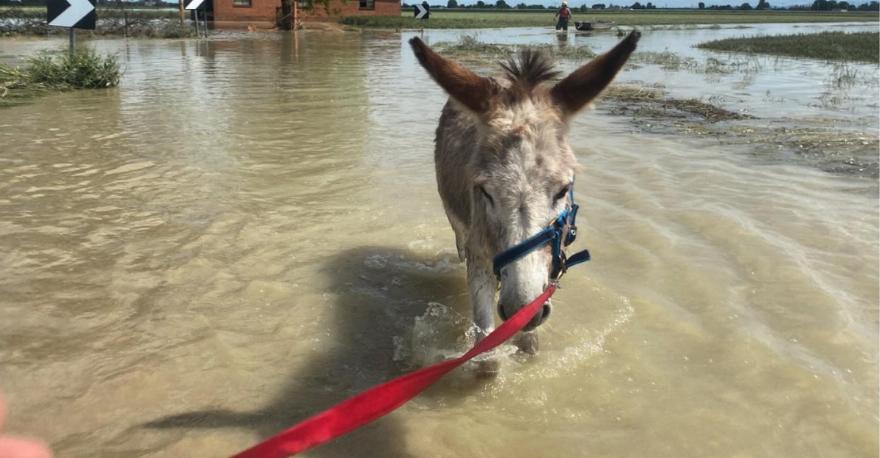 Σε αυτή την τραγική κατάσταση, η περίπτωση ενός γαϊδάρου είναι ένα παράδειγμα που αντικατοπτρίζει το τι συμβαίνει σε αυτή την ιταλική περιοχή. Πρόκειται για τον Mais, έναν γάιδαρο 18 μηνών. Αναγκάστηκε να φύγει μόνος του αφού το νερό έφτασε στο στομάχι του.