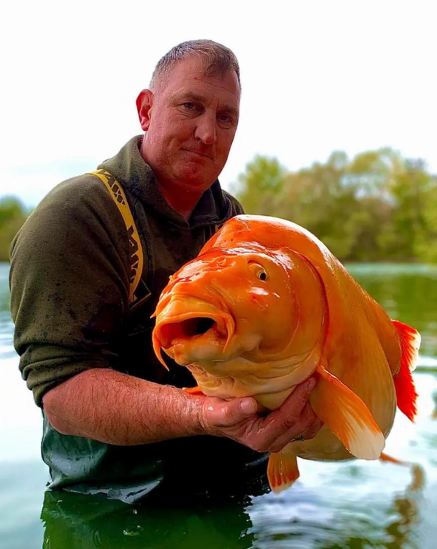 Ωστόσο, ο ψαράς, με το όνομα Άντι Χάκετ κατάφερε να πιάσει ένα από τα μεγαλύτερα χρυσόψαρα του κόσμου, με βάρος άνω των 30 κιλών στη λίμνη Μπλουγότερ Λέικ στη περιοχή της Σαμπανίας στη Γαλλίας.