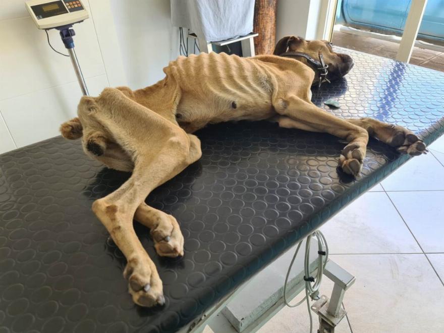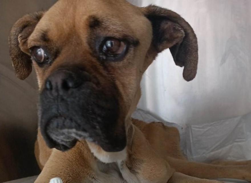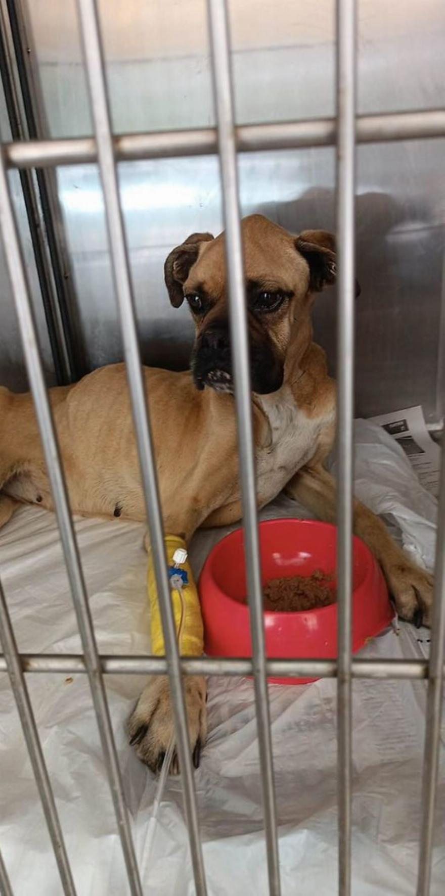 Η Νίκη, ένα σκελετωμένο μπόξερ με λουρί στο Ζαχάρω, βρίσκεται σε κρίσιμη κατάσταση.