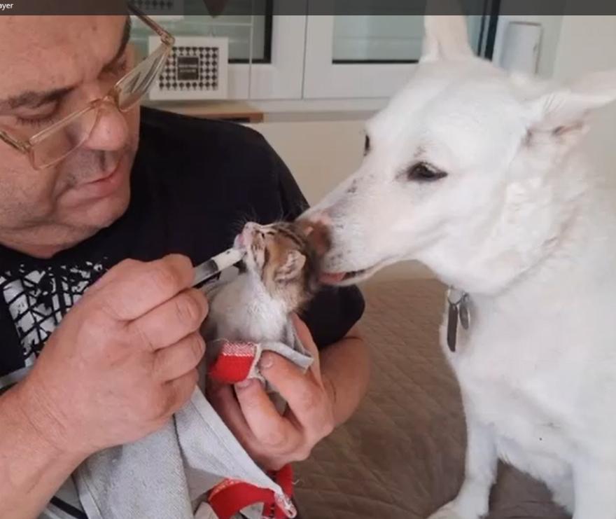 Κάπως έτσι βρέθηκε ο Γιάννης στη Βαρύ, ο οποίος έχει 13 γάτες και πέντε σκυλιά που ζουν στον κήπο του. Ένας από τους σκύλους του, ο Balu, είναι ένα καλομαθημένο νεογέννητο γατάκι και έτσι ανέλαβε αυτό το δύσκολο έργο”.