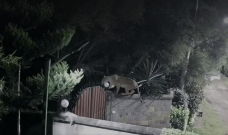 Στις εικόνες που δημοσιεύτηκαν, η λέαινα φαίνεται να πηδά πάνω από την περίφραξη του σπιτιού και να φεύγει με ένα ροτβάιλερ στο στόμα της.
