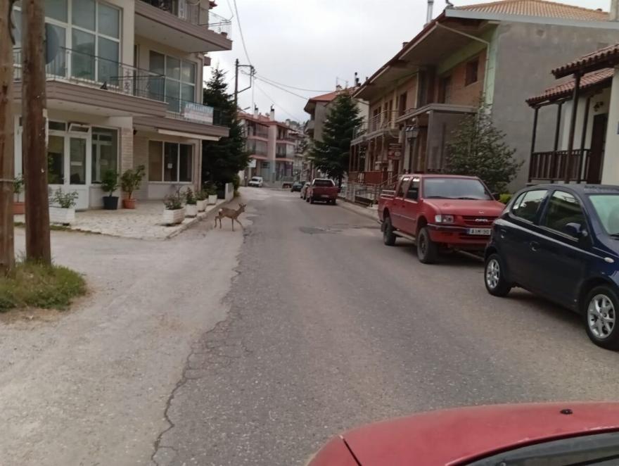 Ένα αρσενικό ζαρκάδι εντοπίστηκε να περιπλανιέται στους δρόμους του Καρπενησίου, αναζητώντας τροφή, τις πρωινές ώρες της Μεγάλης Πέμπτης.
