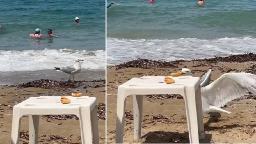 «Ελαφροχέρης» αποδείχθηκε ένας γλάρος στο Ηράκλειο καθώς έκλεψε κρουασάν από λουόμενους.