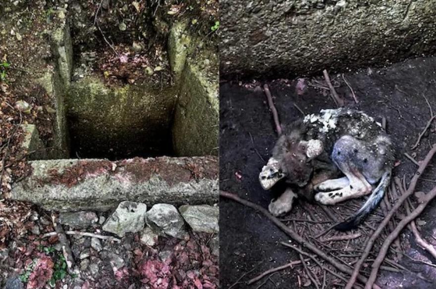 Το κουτάβι, πιθανόν παγιδευμένο για μέρες, βρέθηκε σε κρίσιμη κατάσταση: αφυδατωμένο, τραυματισμένο και μολυσμένο από παράσιτα.