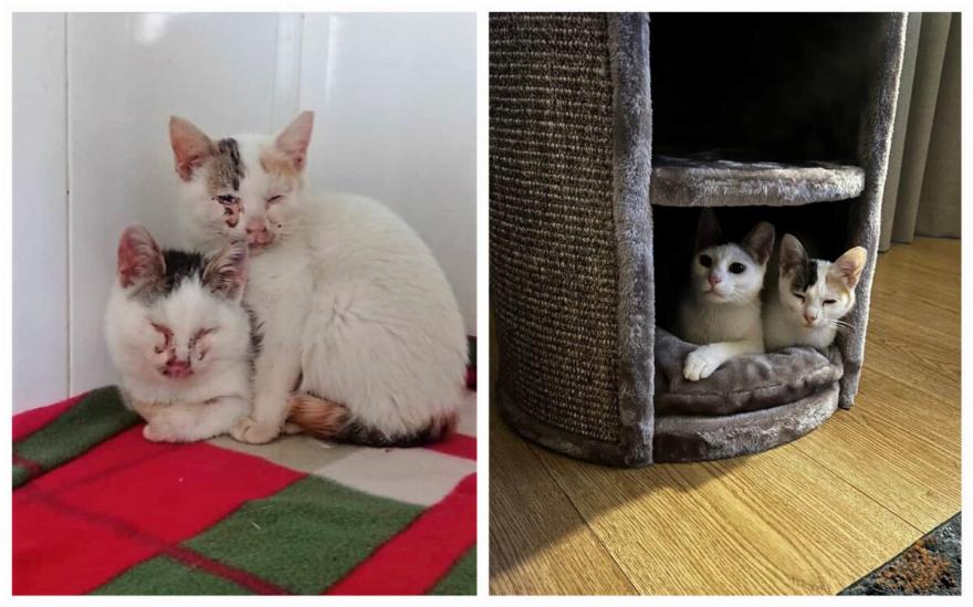 Πρόκειται για μια υπέροχη υιοθεσία δύο μικρών γατιών που ξεκίνησαν άσχημα της ζωή τους στους αφιλόξενους δρόμους της χώρας μας. Όμως χάρη στους εθελοντές αυτή τη στιγμή έχουν σπίτι.