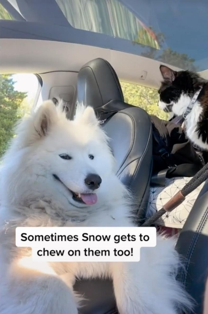 «Επειδή βρισκόμαστε σε ένα Tesla, έχουμε δύο μπαούλα, άρα αυτό είναι ένα από αυτά — αυτό έχει το πιστολάκι για σκύλους, την καρέκλα μου για το γκαζόν, το ηλιακό μου πάνελ, καθώς και ένα αναδιπλούμενο σπιτάκι σκύλου, καλλιτεχνικά πατίνια και μερικά άλλα διάφορα είδη όπως το χειμερινό μου παλτό».